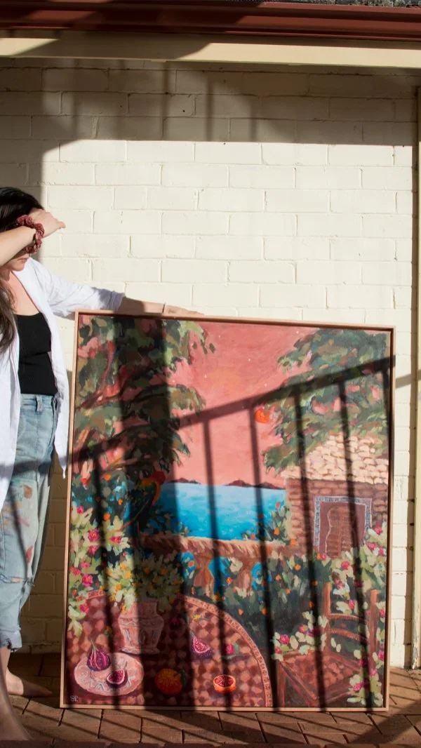 I work across both original artwork creation and pattern design/illustration. With a deep fascination for the alchemy of paint and pattern, I create eclectic, textural pieces that explore themes of colour, place, and nostalgia. My inspiration comes from time spent outdoors, the beauty of Australia’s natural landscapes, and the memories of summer days and travels abroad. I believe inspiration is a wild and unpredictable force—the magic happens when we stay open to its spontaneous nature as it ebbs and flows.